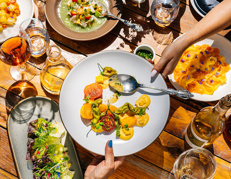Our culinary experiences are thoughtfully crafted by local experts who draw inspiration from the seasons and what’s thriving in our gardens. With a deep appreciation for the abundance of our region, we source as much as possible from nearby purveyors, celebrating the vibrant produce and flavors of our backyard. Every meal is a reflection of our commitment to local, fresh, and sustainably grown ingredients.
